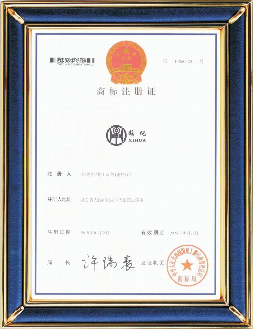 “錫化”牌漢字圖形注冊(cè)商標(biāo)第七類