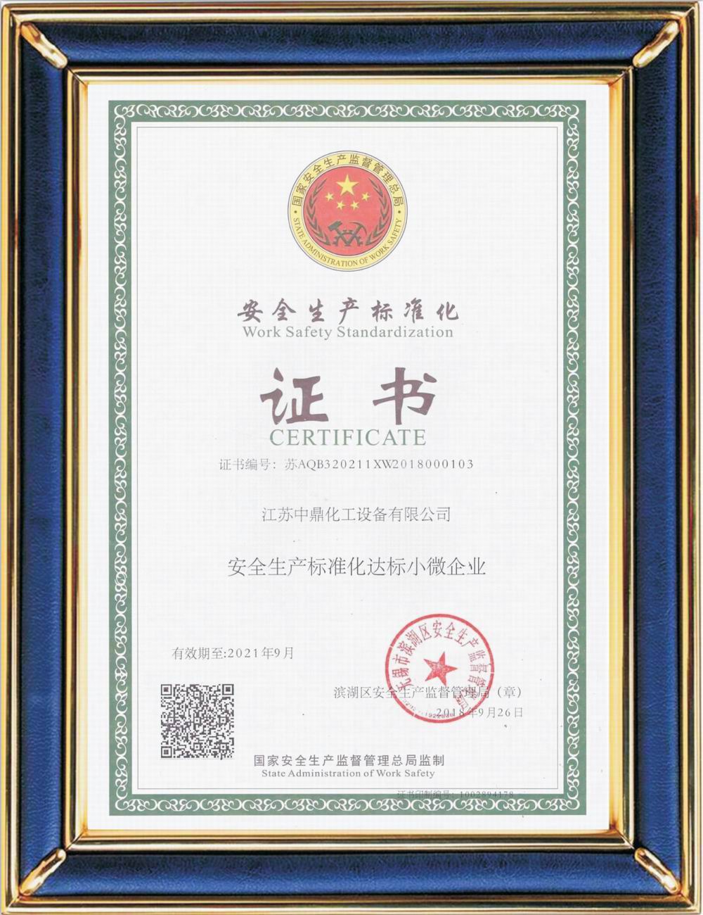 安全生產(chǎn)標(biāo)準(zhǔn)化證書