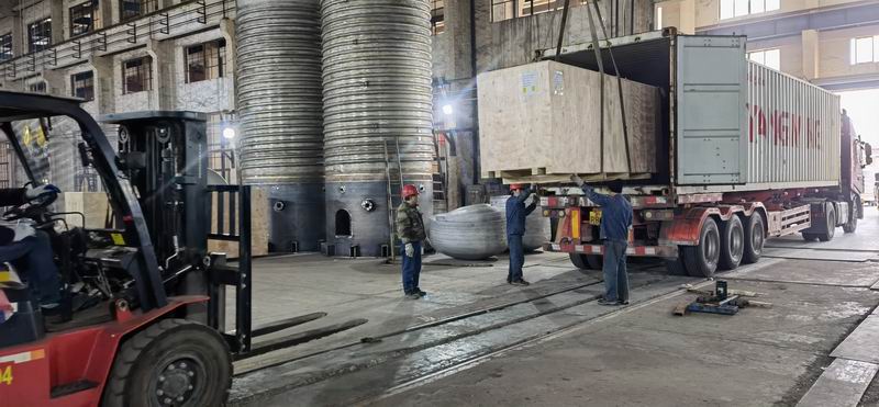江蘇中鼎化工設備有限公司承接泰國某企業(yè)11臺列管式換熱器裝車包裝過程