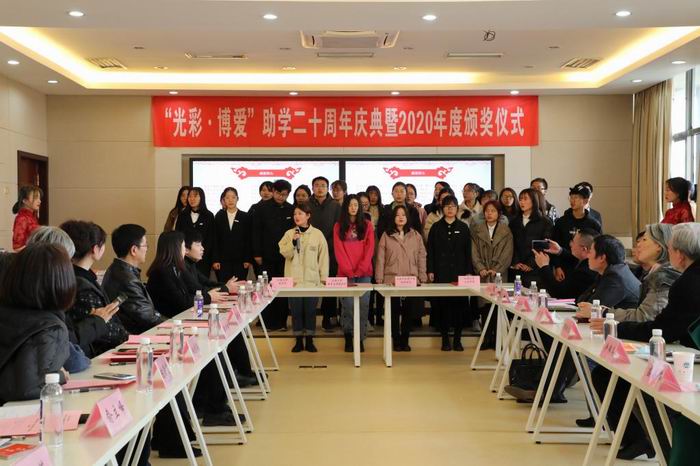 活動伊始,婁國棟致辭,對“光彩·博愛”獎助學(xué)金設(shè)立20周年來為江南大學(xué)的發(fā)展和人才培養(yǎng)給予的有力支持表示由衷地感謝。隨后,特別貢獻(xiàn)獎獲得者代表:沈洪波 在交流中表示,“光彩·博愛”獎助學(xué)金的設(shè)立,希望同學(xué)們能夠在受助的基礎(chǔ)之上,常懷揣感恩之心,傳遞正能量,成為國家之棟梁。許偉英在致辭中表示,“光彩?博愛”活動20年的堅(jiān)持難能可貴,更是一種事業(yè)心和責(zé)任感的表示,希望受助學(xué)子能夠樹立遠(yuǎn)大理想,做富有擔(dān)當(dāng)?shù)男聲r代青年,以優(yōu)異的成績回報(bào)社會。繆根寶在講話中指出,“光彩?博愛”獎助學(xué)金的堅(jiān)持,體現(xiàn)了中華民族捐資助學(xué)的傳統(tǒng)美德,也希望受助學(xué)子能夠努力奮斗,創(chuàng)造自己的精彩人生。隨后由無錫市私營個體經(jīng)濟(jì)協(xié)會、無錫市民營企業(yè)家關(guān)心下一代工作委員會、人文學(xué)院、藥學(xué)院、校教育發(fā)展基金會共同簽訂2021年資助協(xié)議,并為2020年度獲得資助的30名同學(xué)頒獎,最后與會嘉賓和同學(xué)們共同演唱《感恩的心》并合影留念。